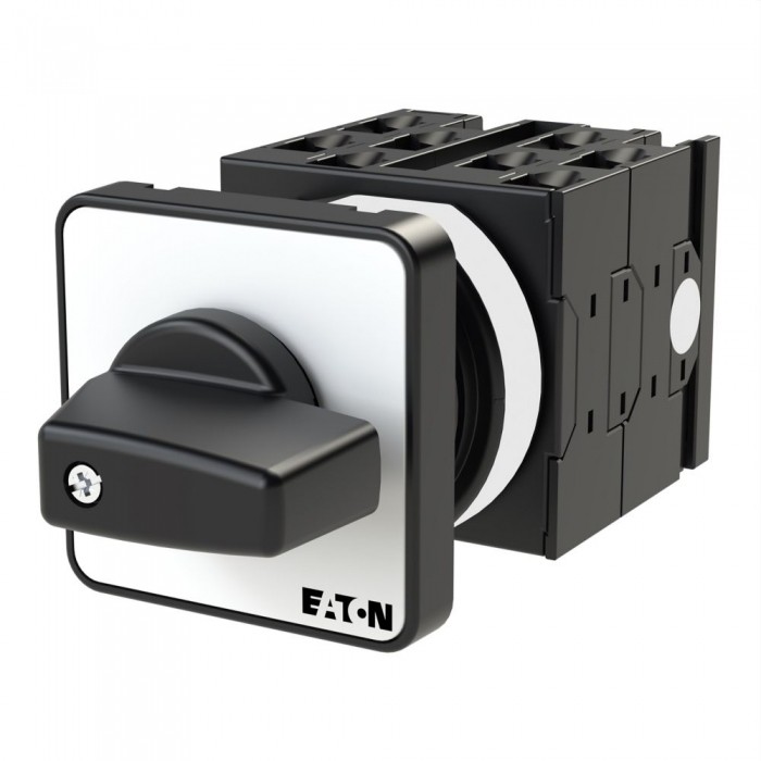 Przełącznik wł.-wył., Zacisk śrubowy: Przełącznik wł.-wył., Odniesienie grupy części T0, z czarnym pokrętłem z tabliczką czołową, 6-biegunowy, Stopień ochrony: Przód IP65, Wykonanie: montaż natablicowy, Kąt przełączania: 90°, Przebieg łączenia: bez samopowrotu, tabliczka czołowa: 0-1, Moc znamionowa AC-23A, 50 - 60 Hz 400 V: P = 5,5 kW, Znamionowy prąd ciągły: Iu = 20 A, 4 segmenty stykowe, Normy: IEC/EN 60947, VDE 0660, IEC/EN 60204, CSA, UL, rozłącznik izolacyjny zgodnie z normą IEC/EN 60947-3