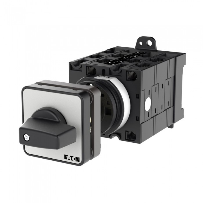 Nawrotny przełącznik gwiazda-trójkąt, Zacisk śrubowy: Łączniki sterownicze, odniesienie do grupy części: T3, z czarnym pokrętłem z tabliczką czołową, Zestyki: 10, Stopień ochrony: Przód IP65, Projekt: montaż na panelu tylnym, Kąt przełączania: 60°, Sposób przełączenia: bez samopowrotu, z pozycją 0 (wył.), tabliczka czołowa: D-Y-0-Y-D, Moc znamionowa AC-23A, 50 - 60 Hz 400 V: P = 15 kW, Znamionowy prąd ciągły: Iu = 32 A, 5 zespoł montażowy, Normy: IEC/EN 60947, VDE 0660, IEC/EN 60204, CSA, UL, rozłącznik izolacyjny zgodnie z normą IEC/EN 60947-3