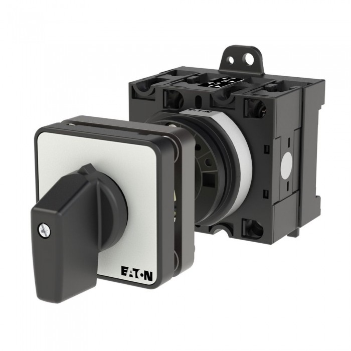 Przełącznik, Zacisk śrubowy: Łączniki sterownicze, odniesienie do grupy części: T3, z czarnym pokrętłem z tabliczką czołową, Zestyki: 4, Stopień ochrony: Przód IP65, Projekt: montaż na panelu tylnym, Kąt przełączania: 60°, Sposób przełączenia: bez samopowrotu, z pozycją 0 (wył.), tabliczka czołowa: 1-0-2, Moc znamionowa AC-23A, 50 - 60 Hz 400 V: P = 15 kW, Znamionowy prąd ciągły: Iu = 32 A, 2 zespoł montażowy, Normy: IEC/EN 60947, VDE 0660, IEC/EN 60204, CSA, UL, rozłącznik izolacyjny zgodnie z normą IEC/EN 60947-3