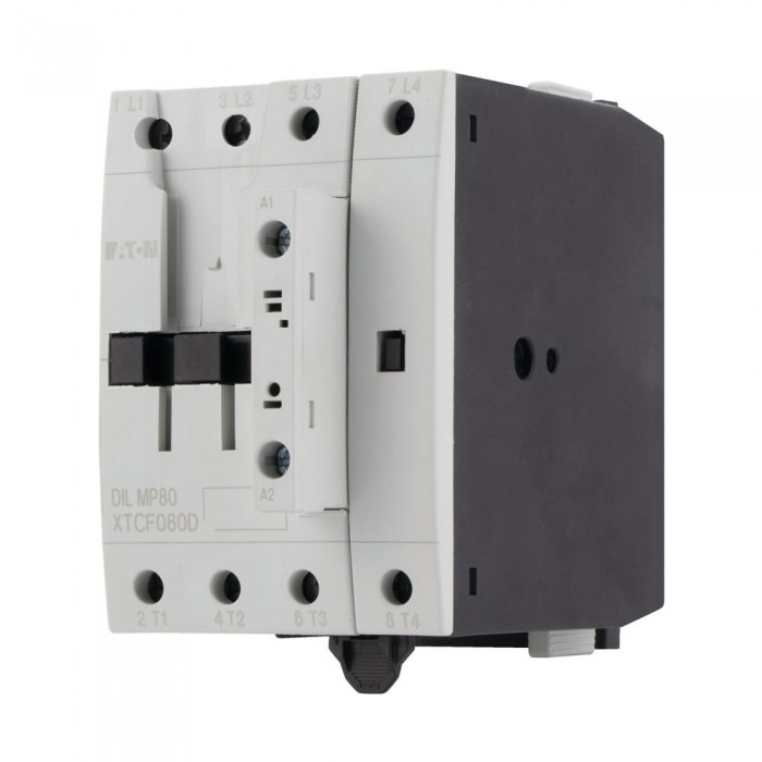 Stycznik, Zastosowanie: Styczniki dla 4-biegunowych odbiorników elektrycznych, Styczniki do 200 A, 4-biegunowy, Kategoria użytkowa: AC-1: Obciążenia nieindukcyjne lub obciążenia o małej indukcyjności, piece oporowe, AC-3: Standardowe silniki indukcyjne AC: rozruch, wyłączanie w trakcie pracy, Sposób podłączenia: Zaciski śrubowe, Liczba biegunów: 4-biegunowy, 380 V 400 V: Ie= 50 A, Konwencjonalny prąd termiczny, 3-biegunowy, 50–60 Hz Otwarty przy 40°C: Ith =Ie= 80 A, w obudowie: Ith = 64 A, Konwencjonalny prąd termiczny, 1-biegun, otwarty: Ith = 207 A, w obudowie: Ith = 186 A, 220 V 230 V: P= 15,5 kW, 380 V 400 V: P= 22 kW, 660 V 690 V: P= 30 kW