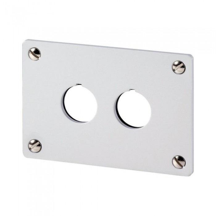 Płyta czołowa, Liczba lokalizacji: 2, Stopień ochrony: IP65, Kolor szary, Wartość koloru RAL: RAL 7035, Podłączanie do SmartWire-DT: nie, Przy rozmieszczeniu prostopadłym nie można stosować dodatkowych tabliczek, Stopień ochrony tylko w połączeniu z odpowiednią obudową i przy prawidłowym montażu., Aluminium jasne anodowane, z M22-XE...