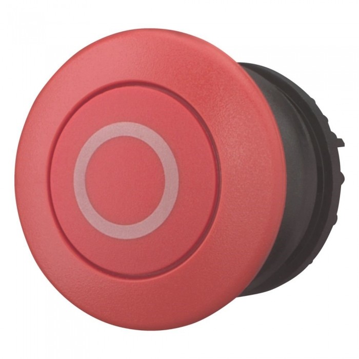 Przycisk grzybkowy, RMQ-Titan, Kolor grzybka, z samopowrotem, Kolor grzybka czerwona, czerwony, opisane, Pierścień czołowy czarny