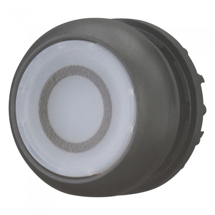 Przycisk podświetlony uruchamiający, RMQ-Titan, Zlicowane, bez samopowrotu, Biały, z oznaczeniem 0, Pierścień czołowy: czarny