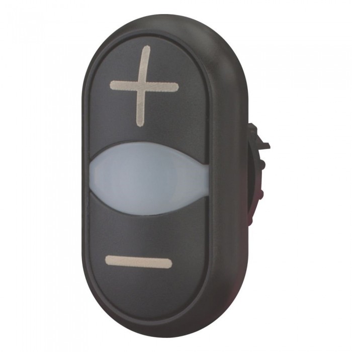 Przycisk podwójny, Zacisk śrubowy: RMQ-Titan, Urządzenie pojedyncze, Projekt: Elementy uruchamiające i lampki sygnalizacyjne niezlicowane, z samopowrotem, Opis: Biała soczewka, wkładka przycisku: czarny, czarny, Wkładka przycisku podpisana, Stopień ochrony: IP66, Pierścień czołowy: czarny, Podłączanie do SmartWire-DT: tak, z przyłączami SWD-RMQ, Wymiary przedniej części: 29,7 x 54,7, Normy: IEC/EN 60947, VDE 0660