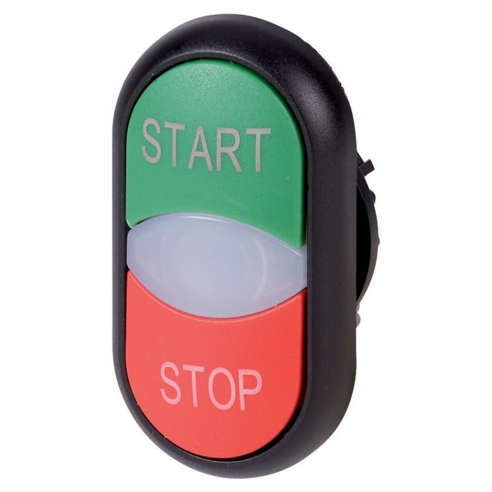 Przycisk podwójny, RMQ-Titan, Elementy uruchamiające i lampki sygnalizacyjne niezlicowane, z samopowrotem, Biała soczewka, do wyboru, możliwość zastos