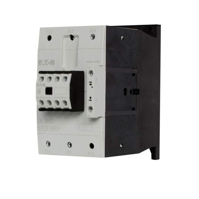 Stycznik, Zastosowanie: Styczniki do silników, Kompletne urządzenia do 170 A, Kategoria użytkowa: AC-1: Obciążenia nieindukcyjne lub obciążenia o małej indukcyjności, piece oporowe, AC-3: Standard. silniki indukcyjne AC: rozruch, wyłączanie w trakcie pracy, AC-4: Stand.silniki induk.AC:rozruch,hamwanie,nawrót,praca impulsowa,Sposób podłącz.: Zaciski śrubowe, Uwagi: Odpowiednie również dla silników o klasie sprawności IE3., Urządzenia spełniające normy IE3 są oznaczone odpowiednim logo na opakowaniu., Znamionowy prąd roboczy AC-3, 380 V 400 V: Ie= 80 A, Znamionowy prąd roboczy AC-1 Prąd cieplny umowny na wolnym powietrzu, 3-biegunowy