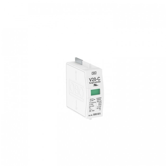 Ogranicznik przepięć V20 wkładka 280V Wkładka ogranicznika przepięć typu 2 • Wkładkę można umieścić w podstawie ogranicznika bez używania dodatkowych narzędzi • Ogranicznik z dynamicznym elementem odłączającym oraz optyczna sygnalizacja uszkodzenia • Wysoka przewodność elektryczna i długa żywotność