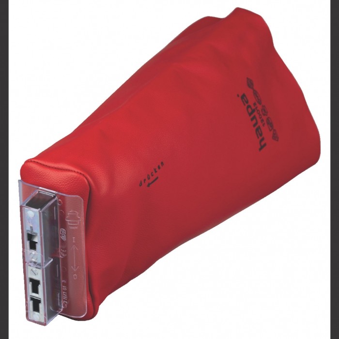 Uchwyt bezpieczny d o BM-ów z zabezpieczeniem przeciwpoślizgowym i mankietem ochronnym, do bezpieczników NH Wielkość 00-3. Mankiet z gładkiej, impregnowanej, czerwonej skóry