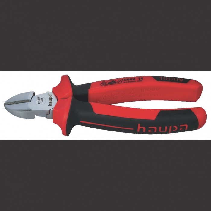 Obcinak boczny DIN ISO 5749 VDE szwedzki kształt, klasa H, ze stali C 60, hartowany olejowo, szczypce dodatkowo hartowane indukcyjnie, do miękkich i twardych drutów, chromowany, nasadzana osłona, przekładnia dźwigniowa, perfekcyjne wykorzystanie siły cięcia