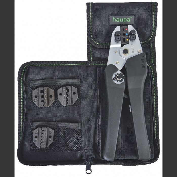 Zestaw X-Crimp, załączona torba na pasek Pewny, dokładny zacisk tak jak przy użyciu praski z matrycami wbudowanymi na stałe. Dostawa w mocnej torbie nylonowej (art. 220260). mechanizm zapadkowy zapewnia zacisk wykonany według obowiązujących norm kompaktowe wykonanie umożliwia precyzyjne wykonanie zacisku w trudno dostępnych miejscach Zawartość: art. 211690 art. 210763/E art. 210764/E art. 210765/E art. 210761/E