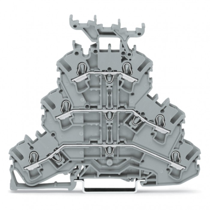 Złączka 3-piętrowa; złączka przelotowa/przelotowa/przelotowa; l/l/l; z podstawką oznacznika; do zastosowań ex e ii; na szynę ts 35 x 15 i 35 x 7,5; 2,5 mm2; push-in cage clamp®; 2,50 mm2; szary