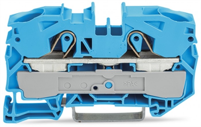 Złączka przelotowa 2-przewodowa; 16 mm2; do zastosowań ex e ii oraz ex i; opis z boku i na środku; na szynę ts 35 x 15 i 35 x 7,5; push-in cage clamp®; 16,00 mm2; niebieski
