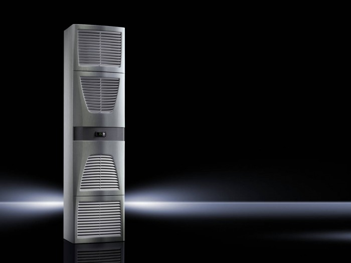 TopTherm ścienne jednostki chłodzenia Blue e Energooszczędne Blue e ścienne chłodzenia z zintegrowanym kontrolerem e-comfort, elektryczne odparowywanie kondensatu i hydrofobowa powłoka RiNano na kondensatorze. Całkowita moc chłodzenia: L 35 L 35 przy 50 Hz: 3,95 kW L 35 L 35 przy 60 Hz: 4,35 kW L 35 L 50 przy 50 Hz: 3,02 kW L 35 L 50 przy 60 Hz: 3,52 kW Zużycie energii: L 35 L 35 przy 50 Hz: 1,6 kW L 35 L 35 przy 60 Hz: 2 kW L 35 L 50 przy 50 Hz: 1,87 kW L 35 L 50 przy 60 Hz: 2,34 kW Przepustowość powietrza wentylatorów bez przeszkód przepływ powietrza zewnętrzny: 2000 m3/h Przepustowość wentylatorów bez przeszkód przepływ powietrza wewnętrzny: 1500 m3/h Współczynnik efektywności energetycznej EER: 2,47 Napięcie nominalne robocze: 400/460 V, 50/60 Hz Wymiary [W x H x D]: 500 x 1580 x 340 mm Czynnik chłodniczy : R134a Kontrola temperatury: e-Comfort controller ( fabryczne ustawienie +35°C) Zakres temperatury otoczenia: 10°C do 55°C Zakres ustawień: 20°C do 55°C Kategoria ochrony według IEC 60 529: Zewnętrzny obwód IP 34 Kategoria ochrony według IEC 60 529: Układ wewnętrzny IP 54 Masa: 91 kg Materiał: stal nierdzewna