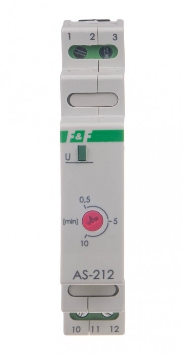 Zasilanie 230 V. Maksymalne obciążenie 16 A. Na szynę 35 mm. Współpracuje z przyciskami podświetlanymi. Automat schodowy służy do utrzymania włączonego oświetlenia korytarzy, klatek schodowych lub innych obiektów przez określony czas, po upływie którego oświetlenie zostanie wyłączone automatycznie.