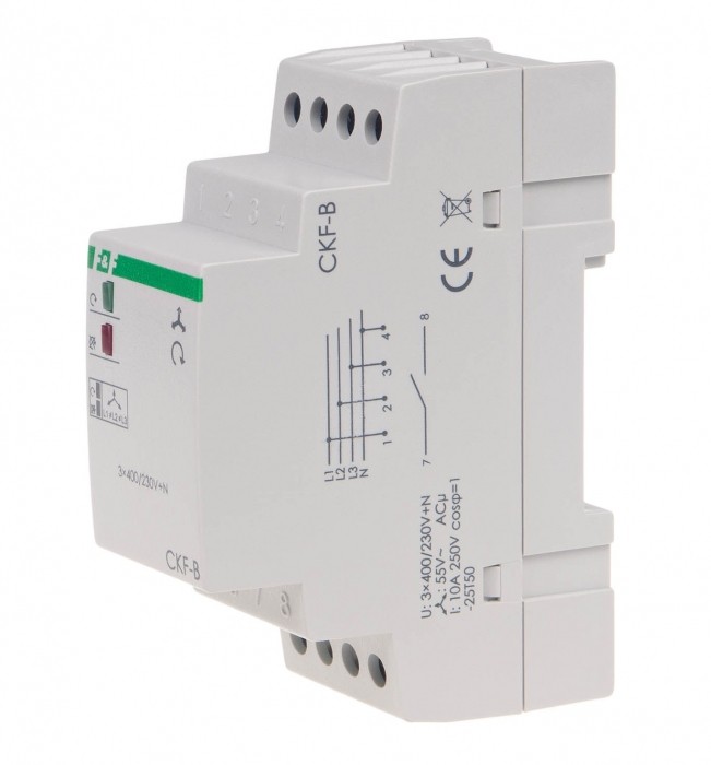 Ze stałym progiem asymetrii napięciowej zadziałania. Styk 1 x NO. Czujnik kolejności i zaniku faz przeznaczony jest do zabezpieczania silników elektrycznych zasilanych z sieci trójfazowej w przypadkach zaniku napięcia w co najmniej jednej fazie lub asymetrii napięć między fazami, grożących zniszczeniem silnika oraz zabezpieczeniem kierunku obrotów silnika w przypadku zmiany faz przed czujnikiem.