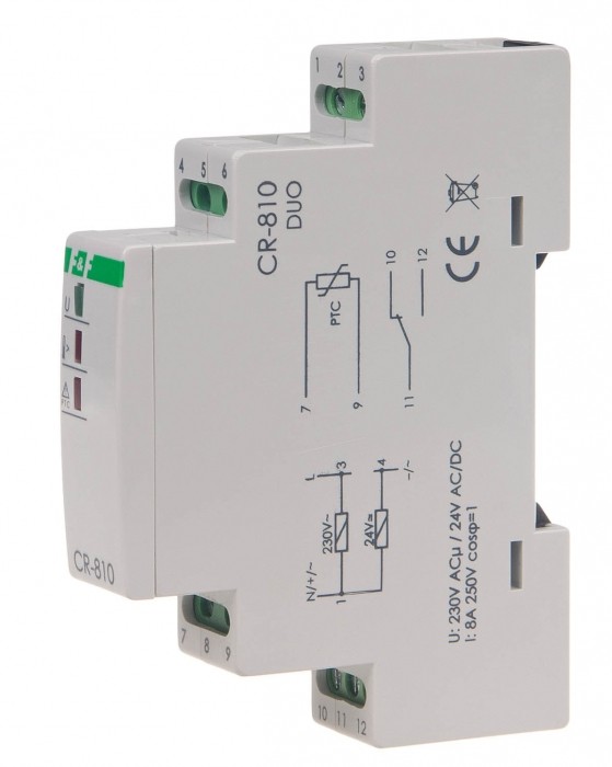 Do współpracy z termistorami PTC. Przekaźnik rezystancyjny (termiczny) służy do ochrony urządzeń elektrycznych przed niepożądanym wzrostem temperatury przy wykorzystaniu czujników termistorowych PTC, połączonych szeregowo w ilości 1÷6 sztuk.