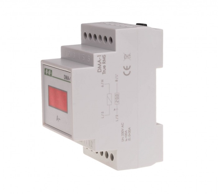 Cyfrowy. Jednofazowy. Wskaźnik natężenia prądu DMA-1 służy do ciągłego odczytu wartości obciążenia obwodu elektrycznego sieci jednofazowej.