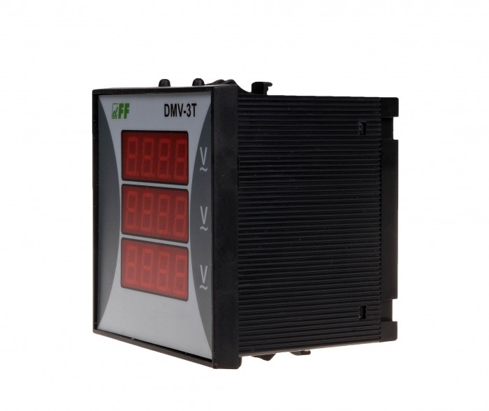 Panelowy. Trójfazowy. Wskaźnik napięcia DMV-3T służy do ciągłego odczytu wartości napięć sieci trójfazowej.