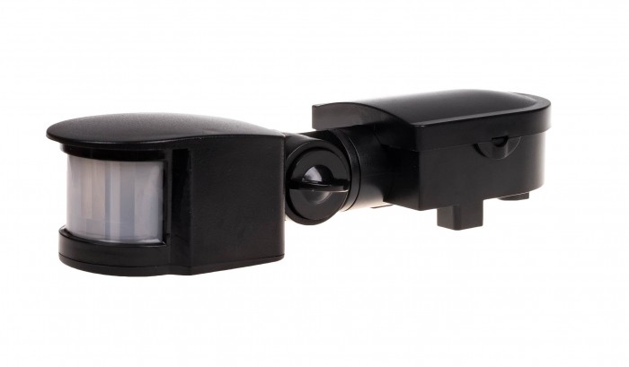 Montaż natynkowy. IP44. Kolor Czarny Czujnik ruchu służy do automatycznego, czasowego załączania oświetlenia w przypadku pojawienia się osoby lub innego obiektu w takich miejscach, jak: korytarze, podwórza, podejścia i podjazdy, garaże, itp.