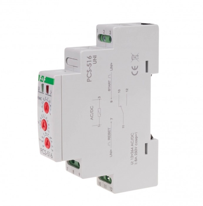 Napięcie zasilania 12÷264 V AC/DC Tryb pracy wielofunkcyjny Element wykonawczy przekaźnik Maksymalny prąd obciążenia 8 A Konfiguracja styków 1 × NO/NC Separacja styku TAK Opóźnienie zadziałania 50 ms Prąd impulsu sterującego mniej niż 1 mA Sygnalizacja stanu styku LED czerwona Czas działania - regulowany 0,1 s ÷ 576 godz. Sygnalizacja zasilania LED zielona Przyłącze zaciski śrubowe 2,5 mm2 Moment dokręcający 0,4 Nm Pobór mocy 0,8 W Temperatura pracy -25 ÷ 50 °C Wymiary 1 moduł (18 mm) Montaż na szynie 35 mm Stopień ochrony IP20