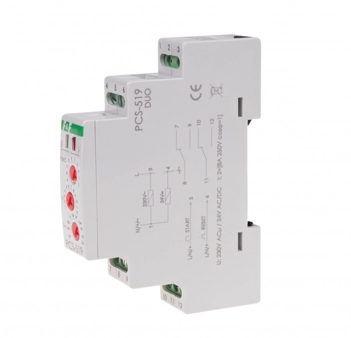 Przekaźnik czasowy 10-funkcji, styki 2NO/NC Uniwersalny 24V lub 230V PCS-519 DUO