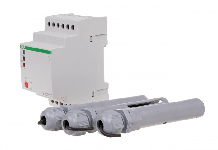 Przekaźnik kontroli poziomu cieczy dwu stanowy z regulacją czułości sond PZ-829 RC, montaż na szynie DIN, styk: 2x1NO/NC 230V