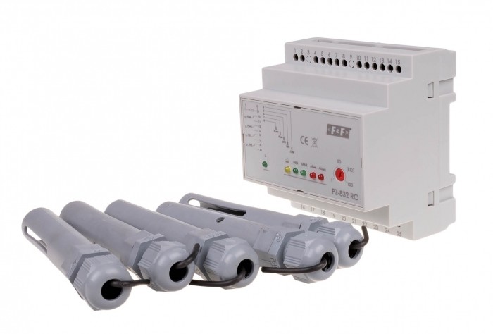 Przekaźnik kontroli poziomu cieczy z sondą PZ-832 RC, montaż na szynie DIN, styk: 4x1NO/NC 230V
