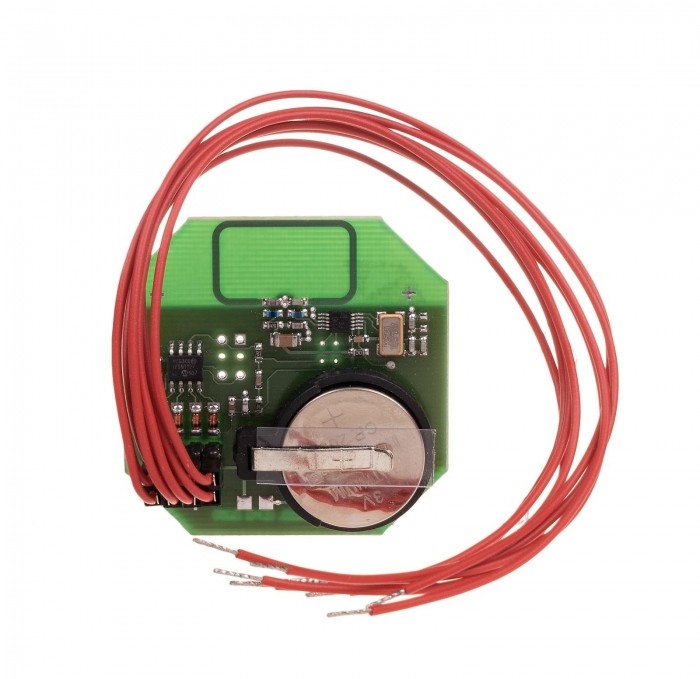 Napięcie zasilania 3 V Częstotliwość radia 868 MHz Typ baterii 2032 (litowa) Transmisja dynamicznie zmienny kod Kodowanie Keelog® Przyłącze LGY 0,5 mm2 Temperatura pracy -25 ÷ 50 °C Wymiary O52 mm; h: 11 mm Montaż w puszce podtynkowej O60 Stopień ochrony IP00