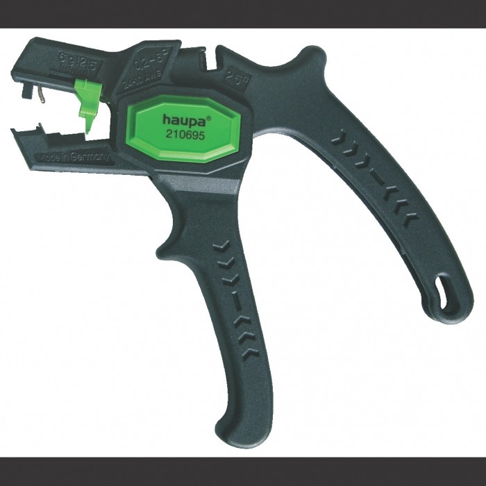 Szczypce do automatycznego zdejmowania izolacji Super Plus Do masywnych i elastycznych przewodów oraz przewodów plecionych 0,2 – 0,6 mm2 (AWG 24 - 10) do szybkiego i precyzyjnego zdejmowania izolacji również w trudno dostępnych miejscach bez konieczności ustawiania na przekroju kabla nadają się do kabli z izolacjami z PCW i innego materiału specjalny system dotykania nie powoduje uszkodzenia przewodu ustawiany opór długości od 6,0 – 15,0 do równomiernego szeregowego zdejmowania izolacji położona z boku boczna obcinarka do przewodów o przekroju maks. 2,5 mm2 obudowa kleszczy wykonana z poliamidu wzmacnianego włóknem szklanym uchwyt kleszczy z podłużnym otworem znajdującym się na dolnym końcu do ich ewentualnego przymocowania