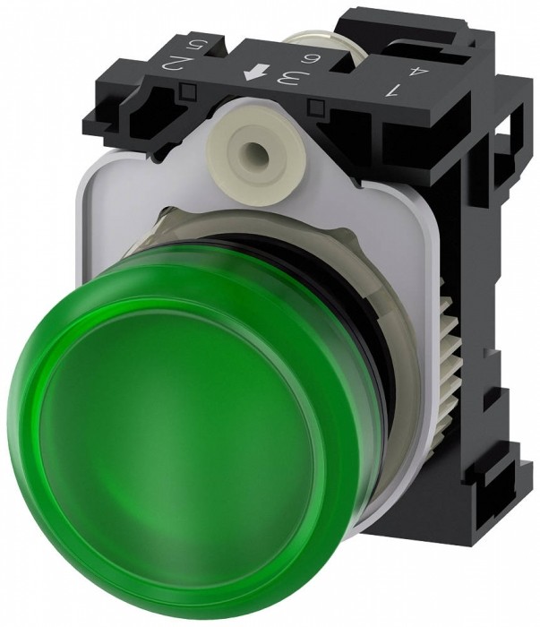 Sygnalizator świetlny, 22 mm, okrągły, tworzywo sztuczne, zielony, Soczewka, matowy, z uchwytem, Moduł LED, ze zintegrowaną diodą LED AC 230 V, przyłącze sprężynowe Lampka sygnalizacyjna SIRIUS ACT do sygnalizowania stanów przełączenia lub błędów w instalacjach o doskonałej jasności dzięki energooszczędnej technologii LED. SIRIUS ACT to jedyna w swoim rodzaju oferta urządzeń sterowniczych oraz sygnalizacyjnych mających dopuszczenia produktowe na całym świecie, dostępna w trzech nowoczesnych liniach wzorniczych wykonanych z wytrzymałego metalu oraz wysokogatunkowego tworzywa sztucznego.Innowacyjna koncepcja łączenia ułatwia montaż, dzięki czemu można go wykonać jednąręką bez użycia żadnych specjalnych narzędzi. Do montażu wystarczają też otwory bez rowków, ponieważ 100-procentowe zabezpieczenie przed przekręceniem jest już zintegrowane w produkcie.Dzięki stałemu wysokiemu stopniowi ochrony te wytrzymałe urządzenia nadają się do użycia w przemyśle oraz na zewnątrz pomieszczeń zamkniętych. Urządzenia można czyścić myjkami wysokociśnieniowymi. Ani kurz, ani oleje, ani agresywne zasady nie są w sanie zakłócić eksploatacji.Oprócz zastosowania standardowego okablowania urządzenia można podłączać do sterownika także przez PROFINET, AS-Interface lub IO-Link. Tym samym można zredukować nakłady na okablowanie, zminimalizować źródła błędów oraz uzyskać większą elastyczność.Graficzny konfigurator online stanowi wygodne wsparcie na etapie dokonywania wyboru oraz składania zamówienia pojedynczych urządzeń, obudów oraz opisów. Dostępna jest także obszerna dokumentacja (np. podręcznik, dane 3D, schemat połączeń). Dostępne wersje: wiele kolorów, różne warianty napięcia. Uwaga: Kompletne urządzenie, Dostawa wraz z uchwytem i modułami. SIRIUS ACT - moc w działaniu podczas sterowania i sygnalizacji. Łatwy montaż, po prostu mocny, po prostu perfekcyjny.