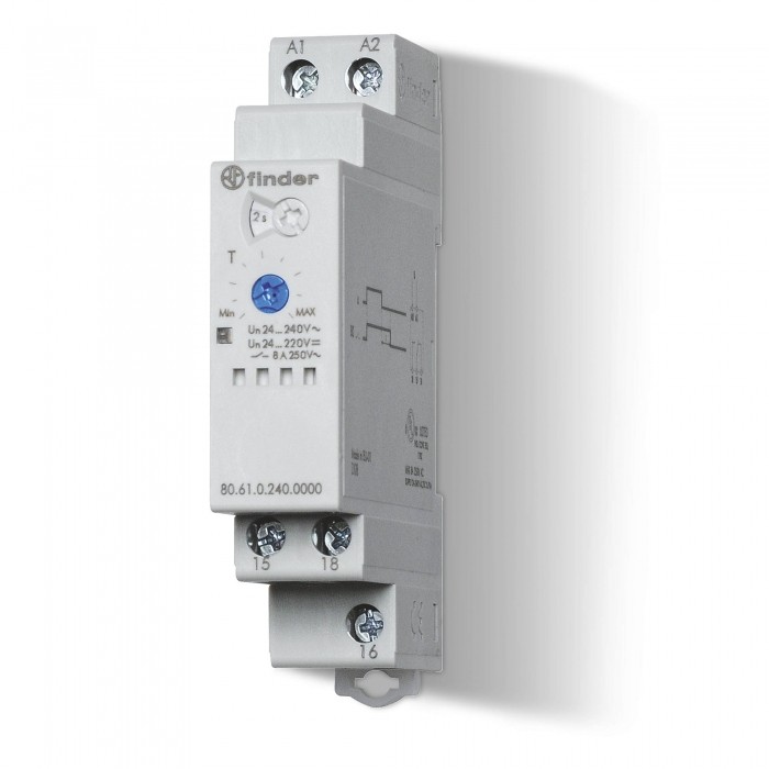 Modułowe timery Nr. styków: 1 Konfiguracja styków: CO (A): 8 A. Wersja z cewką: AC/DC V AC: 240 V. Napięcie DC: 240 V. Nadaje się do montażu z przodu: tak. Z gniazdem do gniazda: nie. Zdalna obsługa możliwa: nie. Nadaje się jako zdalny ster: nie. Funkcja miga, zaczyna się od pauzy, stały czas: nie. Funkcja miga, zaczyna się od impulsu, stały czas: tak. Z wyjściem półprzewodnikowym: nie. Funkcja z opóźnieniem aktywacji: tak. Funkcja pływająca stykiem przy zasilaniu: tak. Funkcja gwiazda-delta: nie. Zakres czasu: od 0,05 do 180 s. Opóźnienie funkcji przy odłączeniu: tak. Funkcja pływającego styku przy odłączeniu: tak. Typ połączenia elektrycznego: złącze śrubowe. Odpowiednie do montażu na szynie DIN (top hat rail): tak. Kategoria ochrony: IP20
