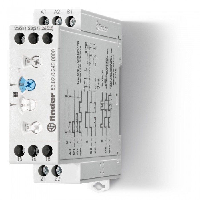 Nr.styki: 2 Konfiguracja styków: CO Materiał stykowy: AgNi (A): 12 A. Wersja z cewką: AC/DC V AC: 240 V. Napięcie DC: 240 V. Nadaje się do montażu z przodu: nie Z gniazdkiem wtyczkowym: nie Zdalna obsługa możliwa: nie Nadaje się jako zdalny ster: brak Funkcja miga, zaczynając od pauzy, stały czas: brak Funkcja migała, uruchamiając impulsem, stały czas: nie Z wyjściem półprzewodnikowym: brak Zasilanie z opóźnieniem funkcji: tak Funkcja pływająca styka przy zasilaniu: tak Funkcja gwiazda delta: nie Zakres czasowy: od 0,05 do 864000 s. Opóźnienie funkcji przy odłączeniu: brak Funkcja pływającego styku przy odłączeniu: tak Typ połączenia elektrycznego: połączenie śrubowe Odpowiednie do montażu na szynie DIN (szyna top hat): tak Kategoria ochrony: IP 20