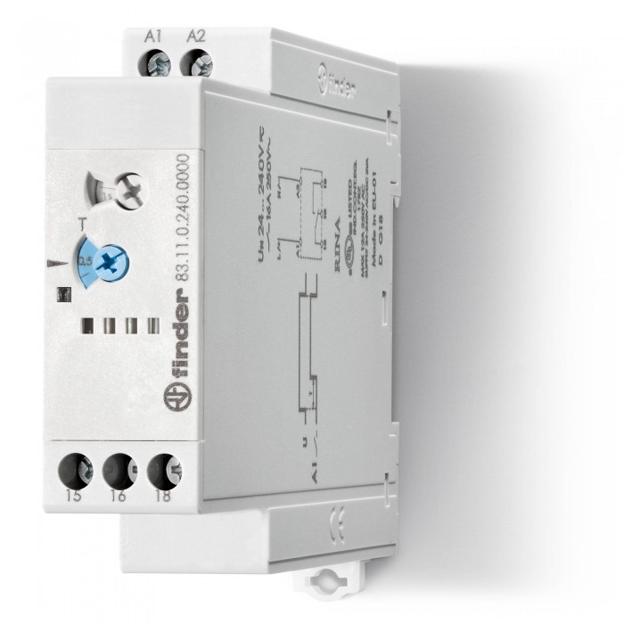 Timery modułowe Nr. styków: 1 Konfiguracja styków: CO Materiał styku: AgNi (A): 16 A. Wersja z cewką: AC/DC V AC: 240 V. Napięcie DC: 240 V. Nadaje się do montażu z przodu: nie Z gniazdem wtyczkowym: brak Zdalna obsługa możliwa: nie Nadaje się jako zdalny ster: brak Miganie funkcji, zaczynając od pauzy, stały czas: brak Funkcja miga, zaczynając od impulsu, stały czas: nie, Z wyjściem półprzewodnikowym: brak Zasilanie z opóźnieniem funkcji: tak Funkcja pływającego styku przy zasilaniu: nie Funkcja gwiazda delta: nie Zakres czasowy: od 0,05 do 864000 s. Opóźnienie funkcji przy wyłączeniu: brak Funkcja pływającego styku przy odłączeniu: brak Typ połączenia elektrycznego: połączenie śrubowe Odpowiednie do montażu na szynie DIN (szyna top hat) montaż: tak Kategoria ochrony: IP 20