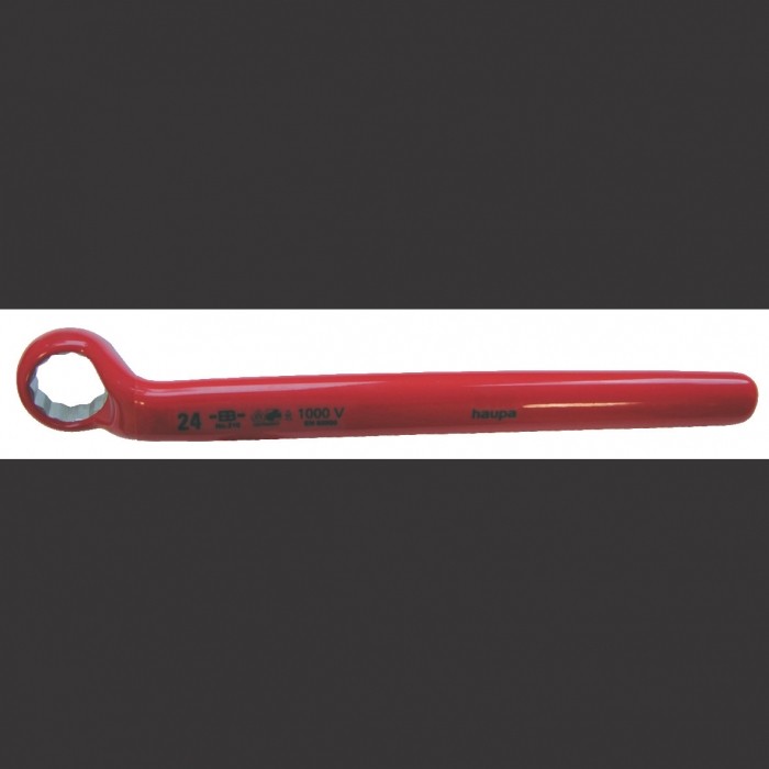 Klucz oczkowy fajkowy 1000 V ze stali chromowo-wanadowej, całkowicie izolowany wg VDE 0682/201, ustawienie oczka 75°, izolacja 2-kolorowa przez zanurzenie – na zewnątrz czerwona/ wewnątrz żółta