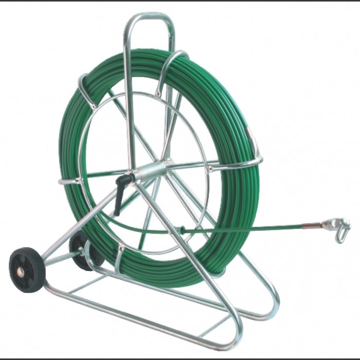 Wciągarki do przewodów FIX Wciągarka do przewodów FIX z włókna szklanego O 7,5 mm w zielonej osłonie z PP RAL 6018, z ocynkowanym bębnem do nawijania O 630 mm, w wersji stojącej na kółkach, komplet z początkową/końcową tuleją M12 i gruszką początkową M12