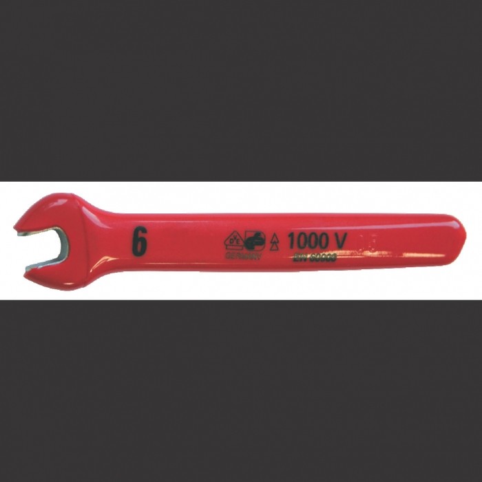 Klucz płaski jednostronny 1000 V ze stali chromowo-wanadowej, całkowicie izolowany, ustawienie szczęk 15°, izolacja 2-kolorowa przez zanurzenie – na zewnątrz czerwona/ wewnątrz żółta