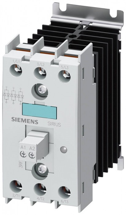 Stycznik półprzewodnikowy 2RF2, 3-faz. AC51 10A 48-600V/4-30V sterowany 3-fazowo DC Stycznik półprzewodnikowy 3-fazowy 3RF2 AC 51 / 10 A / 40 °C 48-600 V / DC 4-30 V 3 fazowa kontrola przyłącze śrubowe Napięcie blokujące 1200 V Stycznik półprzewodnikowy SIRIUS 3RF24 do przełączania obciążeń omowych/indukcyjnych, np. grzejników lub zaworów w instalacji napełniającej. Urządzenia przełączają się bez zużycia i bezgłośnie, dlatego też są idealne do obszarów wrażliwych na hałas (biura, szpitale). Są wyjątkowo niezawodne nawet przy wysokich częstotliwościach załączania. Ponieważ radiator jest już zintegrowany, mogą być używane bezpośrednio w szafie sterowniczej. Kompaktowa konstrukcja oszczędza miejsce na szynie montażowej. Styczniki półprzewodnikowe można również rozszerzyć, po prostu zatrzaskując na nich standardowe moduły funkcyjne 3RF29 do różnorodnych zastosowań. Urządzenia są dopuszczone na całym świecie (np. IEC i UL/CSA). Styczniki półprzewodnikowe są dostępne jako urządzenia 1-fazowe lub jako urządzenia 3-fazowe. Są dostępne dla różnych mocy i znamionowych napięć łączeniowych. Zaprojektowane do uruchamiania AC lub DC, są dostępne z przyłączem śrubowym, sprężynowym lub też z pierścieniową końcówką kablową. Jako akcesoria dostępne są oprócz modułów funkcyjnych 3RF29 również wtyczki sterowania oraz osłony zacisków. Prosty, efektywny, zawsze aktualny - modułowy system SIRIUS.