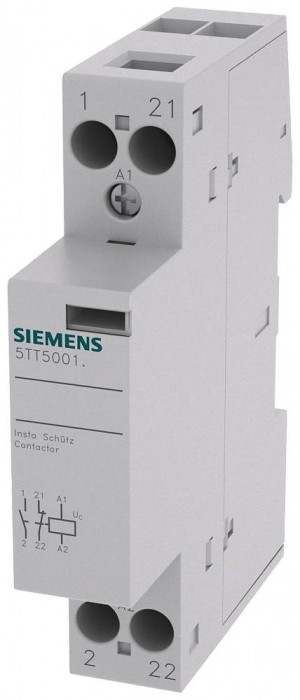 Stycznik instalacyjny z 1 zestykiem zwiernym i 1 zestykiem rozwiernym, zestyk do AC 230V, 400V 20A stycznik instalacyjny do sterowania zgodnie z 14a EnWG z 1 zestykiem zwiernym i 1 zestykiem rozwiernym zestyk do AC 230 V, 400 V 20 A zasterowanie 230 V AC Stycznik instalacyjny SENTRON 5TT5 do zastosowań w budownictwie mieszkaniowym i użytkowym oraz w przemyśle. Aparatura rozdzielcza SENTRON oferuje wygodne i proste wykonywanie montażu i podłączeń oraz niezawodne bezpieczeństwo podczas instalacji dzięki standardowo stosowanej ochronie przed dotykiem. Łączniki zdalnie sterowane, przekaźniki pośredniczące, styczniki instalacyjne i zegary sterujące oferują liczne możliwości realizacji różnych funkcji przełączania. Do aparatury rozdzielczej SENTRON dostępna jestszeroka gama łatwego w montażu wyposażenia dodatkowego. optymalna technika gwarantująca bezpieczeństwo - tylko od firmy Siemens.