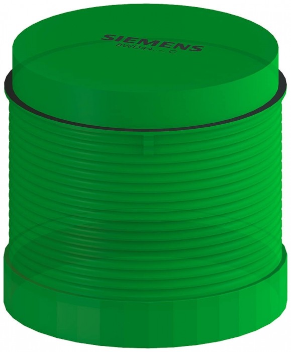 Element światła migającego, ze zintegrowaną diodą LED, zielony, AC/DC 24 V, średnica 70 mm Światło migające, z wbudowaną LED, zielony, AC/DC 24 V, średnica 70 mm Element błyskający SIRIUS 8WD44 z elementem świecącym do modułowej budowy kolumn sygnalizacyjnych, np. do wizualnych i/lub dźwiękowych urządzeń ostrzegawczych lub do kontroli złożonych procesów. Dzięki wysokiemu stopniowi ochrony te trwałe urządzenia nadają się do zastosowań przemysłowych i są wyjątkowo odporne na wstrząsy i wibracje. Bezpieczny zamek bagnetowy umożliwia łatwą instalację i szybką wymianę elementów świetlnych. Oprócz światła ciągłego dostępne są również światła migające, błyskające i obrotowe w różnych kolorach i o różnych napięciach, a także brzęczyki i syreny. Są dostarczane w różnych średnicach, do wyboru również z możliwością komunikacji poprzez połączenie do IO-Link lub interfejsu AS-i. Dzięki zastosowaniu kilku diod LED w jednym module świetlnym uzyskuje się optymalny rozsył światła. Jako akcesoria dostępne są stopki, rurki, kątowniki, żarówki, diody LED i adaptery do rurek. Kolumny sygnalizacyjne SIRIUS 8WD - modułowe i zdolne do komunikacji w nowoczesnym wzornictwie.
