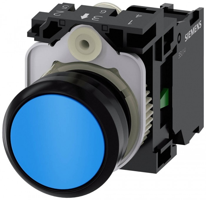Przycisk, 22 mm, okrągły, tworzywo sztuczne, niebieski, Przycisk, płaski, impulsowy, z uchwytem 1NO, przyłącze śrubowe Przycisk SIRIUS ACT do przełączania i sterowania odbiornikami elektrycznymi. SIRIUS ACT to jedyna w swoim rodzaju oferta urządzeń sterowniczych oraz sygnalizacyjnych mających dopuszczenia produktowe na całym świecie, dostępna w trzech nowoczesnych liniach wzorniczych wykonanych z wytrzymałego metalu oraz wysokogatunkowego tworzywa sztucznego.Innowacyjna koncepcja łączenia ułatwia montaż, dzięki czemu można go wykonać jedną ręką bez użycia żadnych specjalnych narzędzi. Do montażu wystarczają też otwory bez rowków, ponieważ 100-procentowe zabezpieczenie przed przekręceniem jest już zintegrowane w produkcie.Dzięki stałemu wysokiemu stopniowi ochrony te wytrzymałe urządzenia nadają się do użycia w przemyśle oraz na zewnątrz pomieszczeń zamkniętych. Urządzenia można czyścić myjkami wysokociśnieniowymi. Ani kurz, ani oleje, ani agresywne zasady nie są w sanie zakłócić eksploatacji.Oprócz zastosowania standardowego okablowania urządzenia można podłączać do sterownika także przez PROFINET, AS-Interface lub IO-Link. Tym samym można zredukować nakłady na okablowanie, zminimalizować źródła błędów oraz uzyskać większą elastyczność.Graficzny konfigurator online stanowi wygodne wsparcie na etapie dokonywania wyboru oraz składania zamówienia pojedynczych urządzeń, obudów oraz opisów. Dostępna jest także obszerna dokumentacja (np. podręcznik, dane 3D, schemat połączeń). Dostępne wersje: wiele kolorów, podświetlane/niepodświetlane, z/bez napisu, uruchamianie bez samopowrotu/impulsowe, różne wysokości przycisków i pierścieni przednich. Uwaga: Kompletne urządzenie, Dostawa wraz z uchwytem i modułami. SIRIUS ACT - moc w działaniu podczas sterowania i sygnalizacji. Łatwy montaż, po prostu mocny, po prostu perfekcyjny.