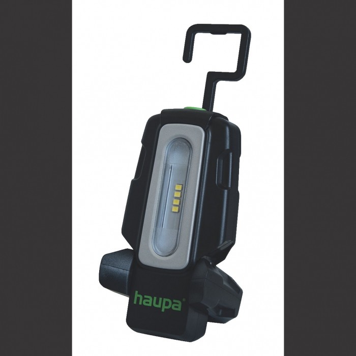 Mini Lampka robocza HUPlight4 Akumulatorek Li-lon 1800 mAh 3,7 V LED 4 Wat ok. 200 Lumenów ok. 3 godzin świecenia ładowanie akumulatorka poprzez mikro USB port stopka do ustawiania pod kątem dwa magnesy do przymocowania zaczep do zamocowania i zawieszenia zawsze & wszędzie przy sobie