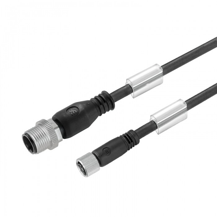 Przewód czujnika-siłownika, M12 / M8, Liczba biegunów: 4, 3 m, złącze męskie, proste - złącze żeńskie, proste, LED: Nie, Ekranowane: Nie Zmontowany przewód czujnik-siłownik do podłączenia czujników lub elementów wykonawczych oraz do transmisji danych. Złącza wtykowe są formowane i testowane.