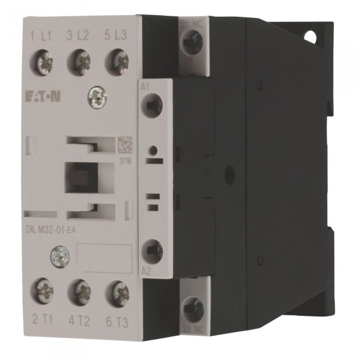 Stycznik, Zastosowanie: Styczniki do silników, Styczniki do 170 A, 3-biegunowy, Kategoria użytkowa: AC-1: Obciążenia nieindukcyjne lub obciążenia o małej indukcyjności, piece oporowe, NAC-3: Standard. silniki indukcyjne AC: rozruch, wyłączanie w trakcie pracy, AC-4: Stand.silniki induk.AC:rozruch,podłącz.,cofanie,pr. spowol.,Sposób podłącz.: Zaciski śrubowe, Uwagi: Odpowiednie również dla silników o klasie sprawności IE3., Urządzenia spełniające normy IE3 są oznaczone odpowiednim logo na opakowaniu., Liczba biegunów: 3-biegunowy, Znamionowy prąd roboczy AC-3, 380 V 400 V: Ie= 32 A, Znamionowy prąd roboczy AC-1 Prąd cieplny umowny na wolnym powietrzu, 3-biegunowy