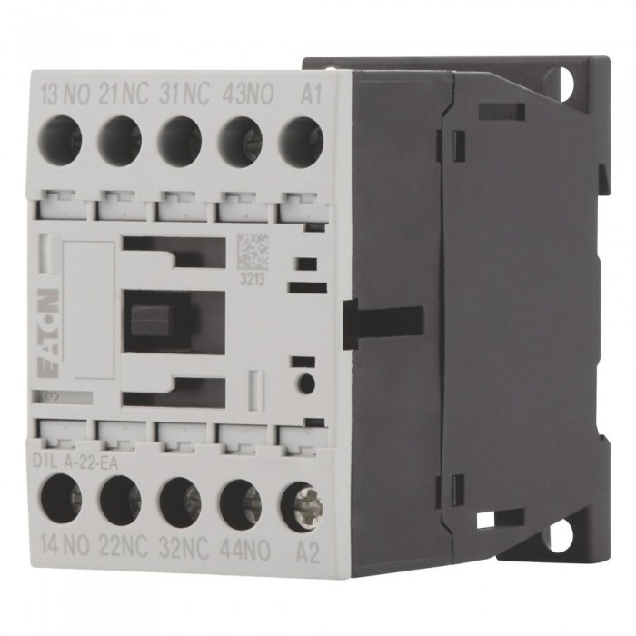 Stycznik pomocniczy (-EA) , 24 V DC, 2 Z, Zaciski śrubowe, Praca DC Stycznik pomocniczy, Zacisk śrubowy: Styczniki pomocnicze DILA, Zastosowanie: Styczniki pomocnicze, Opis: Urządzenia podstawowe z wymuszonym prowadzeniem styków, Sposób podłączenia: Zaciski śrubowe, Znamionowy prąd roboczy AC-15, 220 V 230 V 240 V: Ie= 4 A, 380 V 400 V 415 V: Ie = 4 A, Styki Z = zwierne: 2 Z, Numer kodu oraz wersja kombinacji Specyficzny numer: 22E, Możliwość łączenia z modułem styków pomocniczych: DILA-XHI(V)…, Napięcie sterujące: 24 V DC, Napięcie AC/DC: Praca DC, Stopień ochrony: IP20, Instrukcje: Numeracja styków zgodna z normą EN 50011, Oznaczenia zacisków cewki zgodne z normą EN 50005, wbudowane połączenie ochronne, Normy: IEC/EN 60947