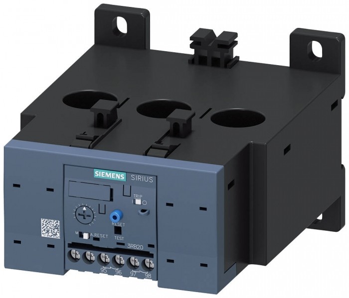 Przekaźnik przeciążeniowy, 50-200A, do ochrony silnika, S6, CLASS 10, automatyczny i manualny RESET Przekaźnik przeciążeniowy 50...200 A do ochrony silnika wielkość S6, CLASS 10E montaż na styczniku/montaż swobodny Obwód główny: przekładnik prądowy przelotowy obwód pomocniczy: przyłącze śrubowe automatyczny i manualny RESET Elektroniczny przekaźnik przekaźnik przeciążeniowy SIRIUS 3RB2 do ochrony odbiorników w zależności od prądu i temperatury przy normalnym i ciężkim rozruchu przed niedopuszczalnie wysokim rozgrzewaniem w następstwie przeciążenia, asymetrią faz lub zanikiem fazy. Dzięki dużym zakresom ustawień prądu i różnym charakterystykom wyzwalania tylko kilka typów jest w stanie obsłużyć całą serię silników. Dzięki niskiej stracie mocy są one szczególnie energooszczędne i przyczyniają się do mniejszego nagrzewania szafysterowniczej. Dopuszczenia na całym świecie (np. IEC i UL/CSA) i możliwość użycia w zastosowaniach zagrażających wybuchem (ATEX) to oczywistość. Dostępne z różnymi zakresami nastawczymi wyłącznika przeciążeniowego i z różnymi klasami wyzwalania. Są one dostępne z przyłączem śrubowym lub sprężynowym do szybkiego, bezobsługowego i odpornego na wibracje podłączania, jak również w wersji do montażu swobodnego. Akcesoria pasują zawsze do wszystkich rozmiarów od S6 do S12. Prosty, efektywny, zawsze aktualny - modułowy system SIRIUS.