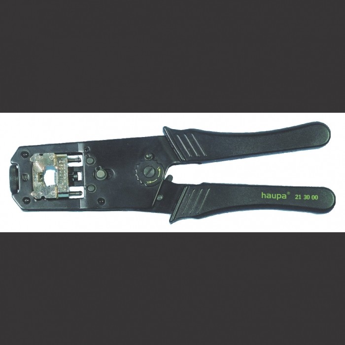 Praska do wtyków RJ typu Western profesjonalne szczypce zaciskowe do ekranowanych i nieekranowanych wtyków typu Western, z wymiennymi nakładkami zaciskowymi, lekkie w użyciu, mały nakład siły dzięki optymalnemu przełożeniu dźwigni, niezawodność w uzyskiwaniu optymalnych połączeń zaciskowych, korpus z hartowanej stali jakościowej, prosta i szybka wymiana nakładek zaciskowych, regulowany nacisk zaciskania i głębokość wprasowania, zastosowanie dla małych i średnich serii, gwarancja wykonania 50.000 zacisków, bez nakładek