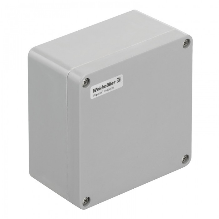 Obudowa z tworzywa sztucznego, Klippon POK (pusta obudowa z poliestru), 160 x 160 x 90 mm, poliester wzmacniany włóknem szklanym, nieobrobiony, błyszc Obudowa z tworzywa sztucznego do urządzeń elektrycznych, elektromechanicznych i pneumatycznych oraz PBC. Nadaje się do stosowania w środowiskach wymagających pod względem mechanicznym i chemicznym. Montaż ścienny można uzyskać za pomocą otworów montażowych lub nóżek montażowych.