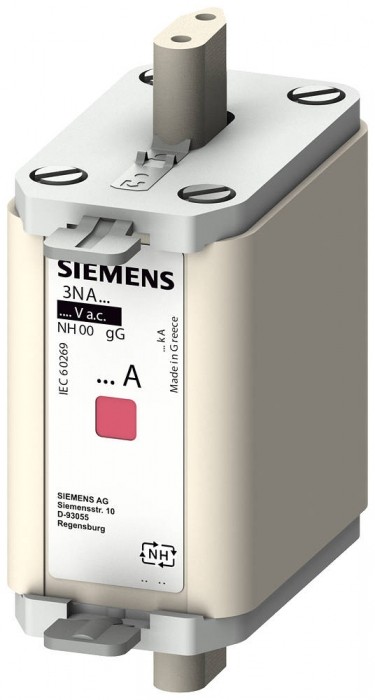 Wkładka bezpiecznika niskonapięciowego wielkiej mocy, NH00, In: 160 A, gG, Un AC: 400 V, wskaźnik kombi wkładka bezpiecznika niskonapięciowego wielkiej mocy, NH00, In: 160 A, gG, Un AC: 400 V, wskaźnik kombi, izolowane nakładki uchwytów Wkładka topikowa NH SENTRON 3NA6 do selektywnej ochrony przewodów i instalacji. System bezpieczników NH daje skuteczną ochronę osób, sprzętu i systemu poprzez bezpieczne odłączenie w przypadku przeciążenia lub zwarcia. Czujki kombinowane sygnalizują wyłączenie bezpiecznika wyraźną zmianą koloru z czerwonego na biały. Wkładki bezpiecznikowe NH są dostępne w zakresie od 2 A do 1250A i w wielkościach 000, 00, 0, 1, 2, 3, 4 i 4a. Warianty z funkcją komunikacyjną i pomiarową w wielkości 2 od 80 A do 315 A. Urządzenia ochronne przełączające SENTRON - Bezpieczny wybór. Teraz jeszcze bardziej inteligentnie.