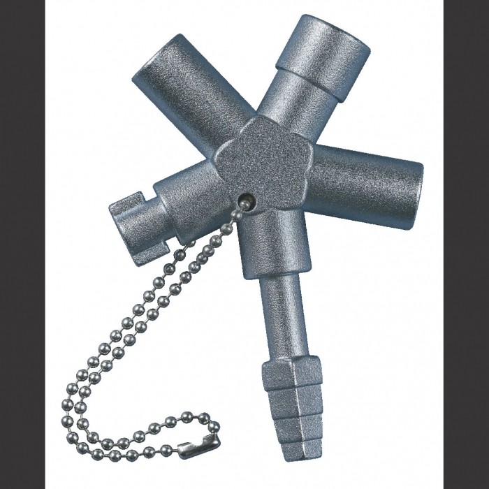 Klucz do szafki rozdzielczej uniwersalny „HUPkey“ czterokątny wewnętrzny 6 - 7 mm, 8 - 9 mm, czterokątny zewnętrzny 5 - 10 mm, klucz z podwójnym piórem 3 - 5 mm, trójkątny wewnętrzny 7 - 9 mm, trójkątny wewnętrzny 11 mm i łańcuszek