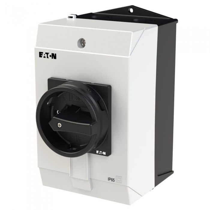 Wyłącznik główny, Zacisk śrubowy: Wyłącznik główny, wyłącznik serwisowy, Wyłącznik naprawczy, Odniesienie grupy części T0, Funkcja zatrzymania: Funkcja STOP, Z czarnym uchwytem obrotowym i pierścieniem blokującym, Uwagi: wersja z otworami do wyłamywania, z arkuszem poglądowym montażu, 3-biegunowy + N, Element blokujący: Możliwość zablokowania w położeniu 0 (Wył.), stopień ochrony: IP65, Projekt: montaż powierzchniowy, Kąt przełączania: 90°, Moc znamionowa AC-23A, 50 - 60 Hz 400 V: P = 5,5 kW, Znamionowy prąd ciągły: Iu = 20 A, 3 zespoł montażowy, Normy: IEC/EN 60947, VDE 0660, IEC/EN 60204, rozłącznik izolacyjny zgodnie z normą IEC/EN 60947-3